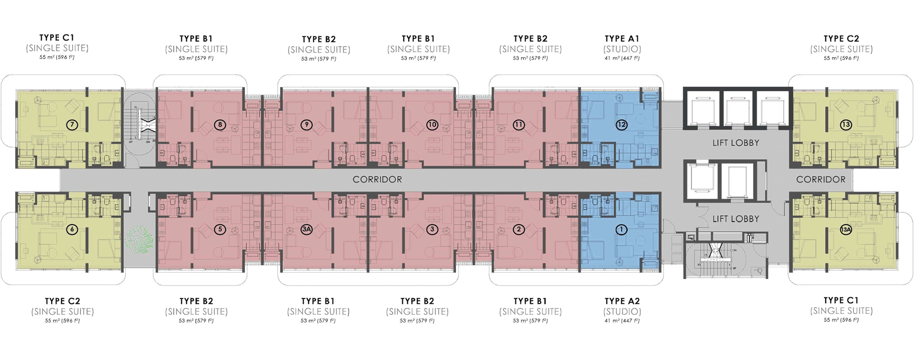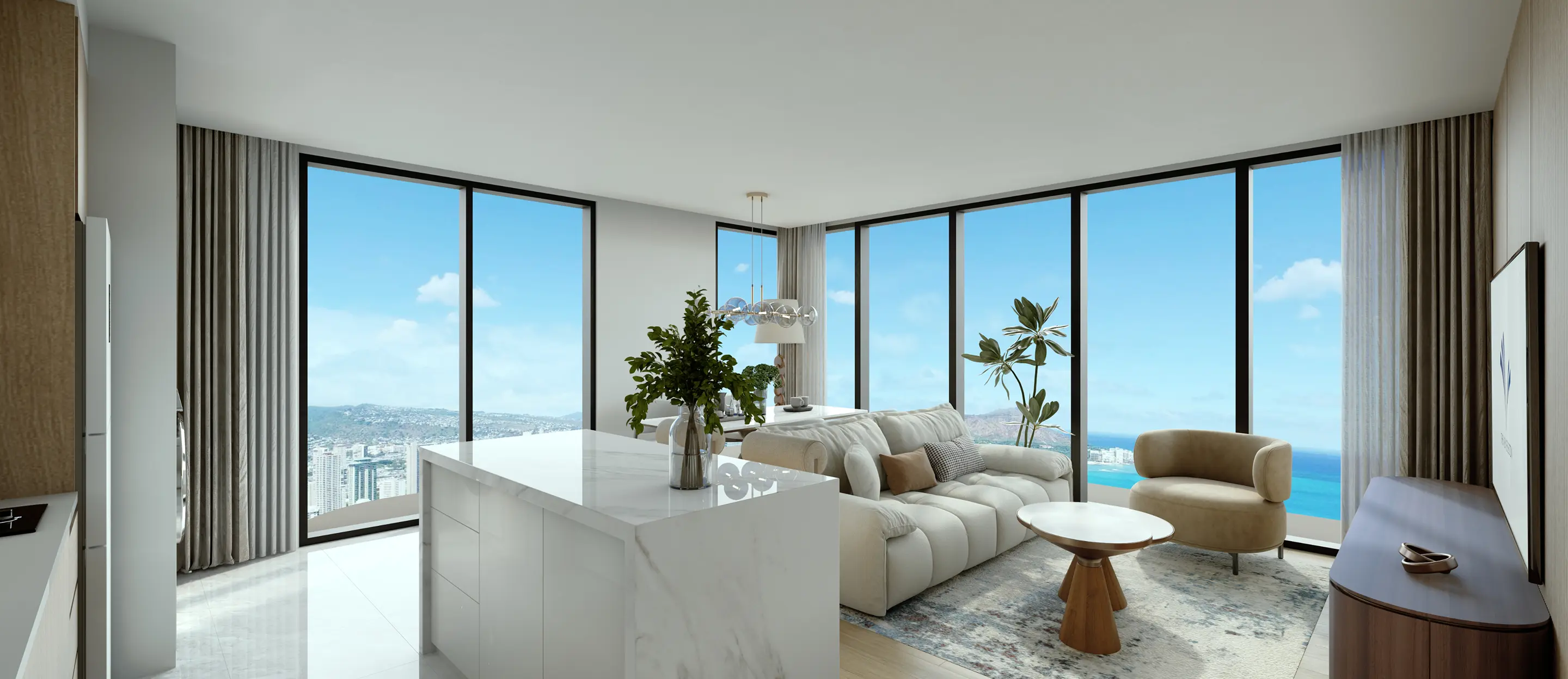 Refined suites boast wide frontages and panoramic